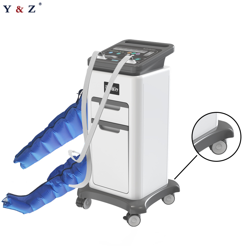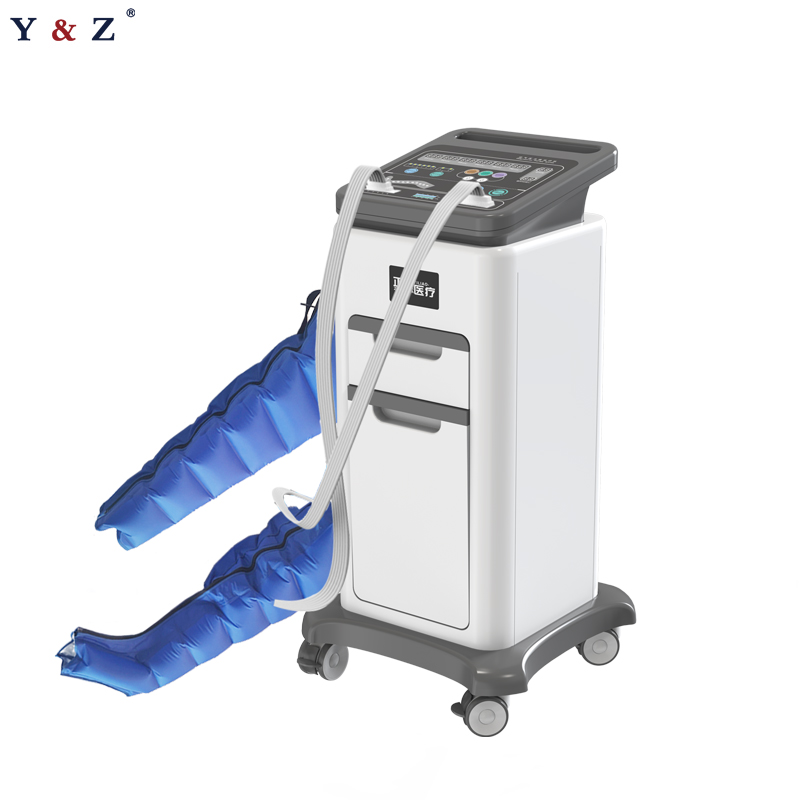 Compression Therapy System is mainly made up of air bag (including upper limb air bag, lower limb air bag) and the main body. The main body is composed of air pump, valve, circuit and the shell. The standard accessories of Compression Therapy System include a pair of upper limb air bag and lower limb air bag. The material of Compression Therapy System are mainly made from PVC or TPU coated material, and press fit by high-frequency machine and sewing to forming bag.
